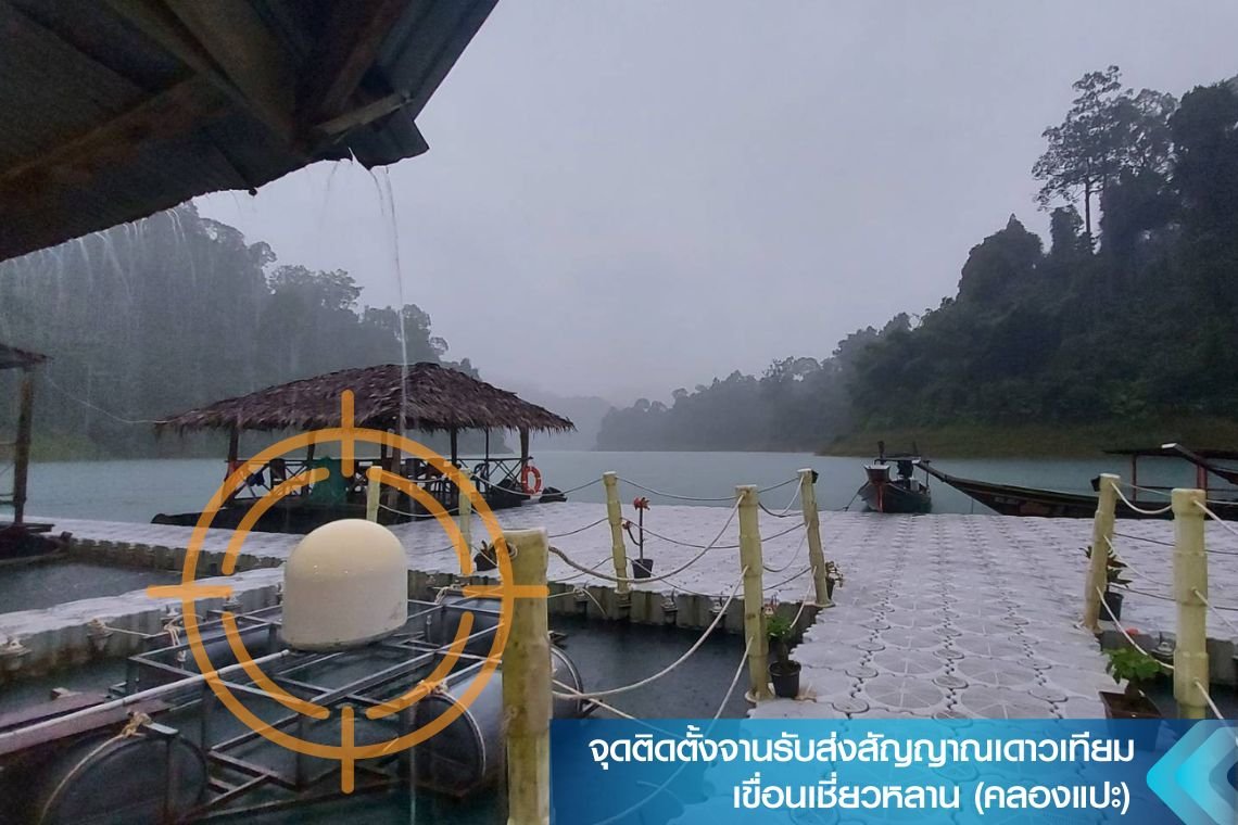 จานดาวเทียมที่นี่จะพิเศษกว่าจุดติดตั้งที่อื่น มีโดมครอบ และอยู่บนแพ