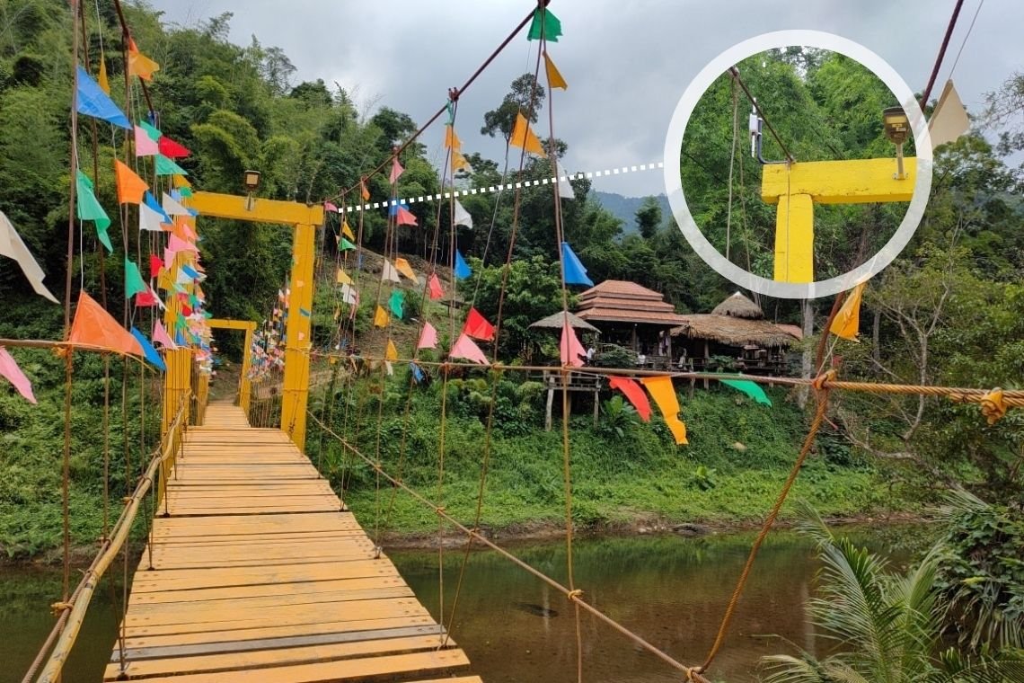 นอกจากบรรยากาศที่ร่มรื่นเป็นธรรมชาติ น้ำก็ใสเย็น แช่สบาย เล่นสนุก มีมุมสวยๆ อย่างจุดสะพานแขวนสีเหลืองที่เป็นสัญลักษณ์ของที่นี่