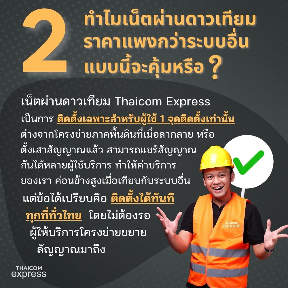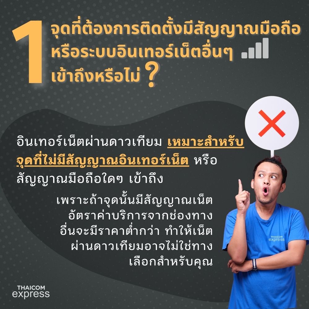 หากคุณยังเป็นอีกคนที่ยังไม่มั่นใจว่า Thaicom Express อินเทอร์เน็ตผ่านดาวเทียม คือตัวเลือกที่ใช่สำหรับคุณหรือเปล่า ในบทความนี้เราได้รวบรวมคำถามยอดฮิตที่ทักถามกันเข้ามาทาง inbox มาช่วยไขข้อข้องใจให้แล้ว และน่าจะเป็นประโยชน์ต่อการตัดสินใจและประเมินว่า อินเทอร์เน็ตผ่านดาวเทียม คือทางเลือกที่ใช่สำหรับคุณหรือไม่? โดยเราอยากจะให้คุณลองดูว่ากับคำถามเหล่านี้ คุณมีคำตอบเช่นไร