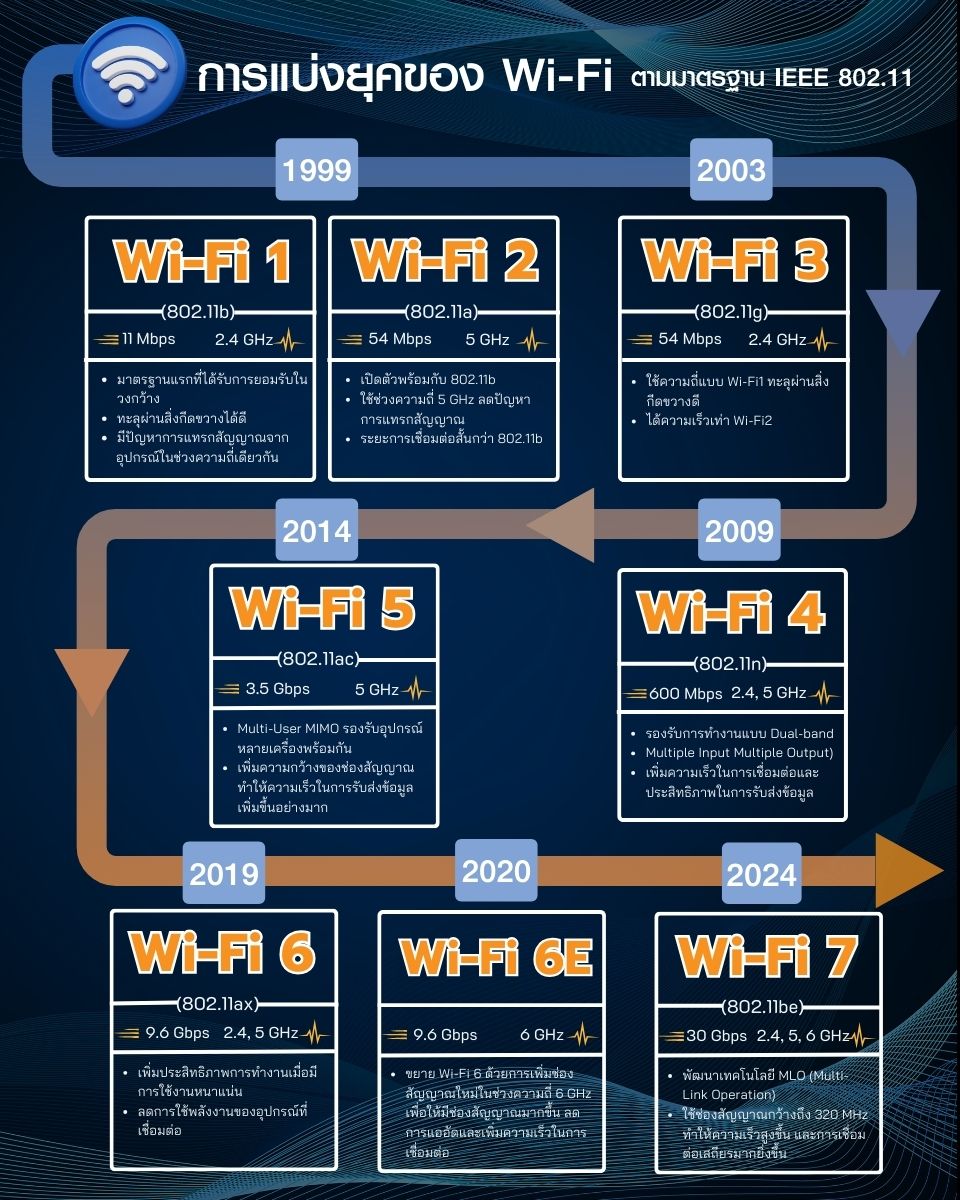 การพัฒนาเหล่านี้แสดงให้เห็นถึงความก้าวหน้าในเทคโนโลยี Wi-Fi ที่ถูกปรับปรุงอย่างต่อเนื่องเพื่อรองรับความต้องการที่เพิ่มขึ้นในด้านความเร็ว ความเสถียร และความสามารถในการรองรับอุปกรณ์หลายเครื่องพร้อมกัน ซึ่งสอดคล้องกับการเปลี่ยนแปลงของวิถีชีวิตและการทำงานที่พึ่งพาเทคโนโลยีอินเทอร์เน็ตมากขึ้น นับว่า Wi-Fi ได้เข้ามาเป็นซึ่งจำเป็นในชีวิตประจำวันของคนยุคปัจจุบันชนิดที่แยกจากกันไม่ได้เลยทีเดียว